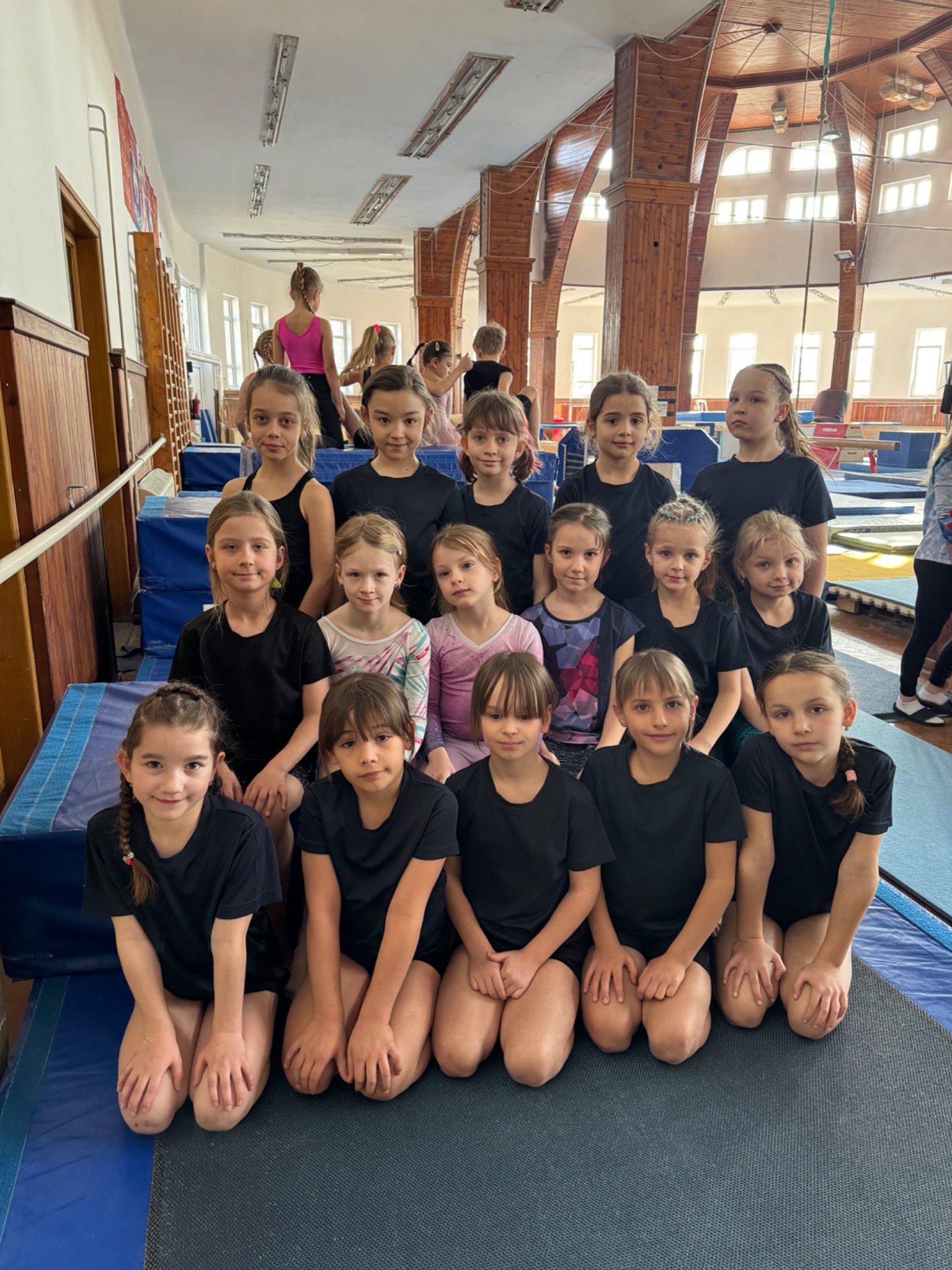 Odjeli jsme v počtu 16 dětí, které byly už od brzkého rána natěšené. Kemp byl zaměřený hlavně na fliky, přemety a salta. Začali jsme rozcvičkou v podobě hry a swingy. Nechyběly ani jednoduché řady na pásech. Po pořádném protažení se rychle nachystalo nářadí a stanoviště. Dopolední blok byl plný průprav. Po vyčerpávajícím dopoledni jsme šli na oběd a měli odpolední klid, během kterého jsme načerpali energii. V odpoledním bloku byl vyhrazený prostor pro pohybovou skladbu. Děti se učily synchronizovat pohyby a vnímat rytmus hudby. Nechyběl tomu ani malý taneček na závěr pohybové části. Po pohybové části byly přichystány ještě čtyři stanoviště, kde děti využily průpravy z dopoledne. Na závěr si ještě zahrály hru a protáhly, aby je po velkém výkonu nic nebolelo. Po vyvedeném dni plném gymnastiky jsme se vydali vlakem domů.